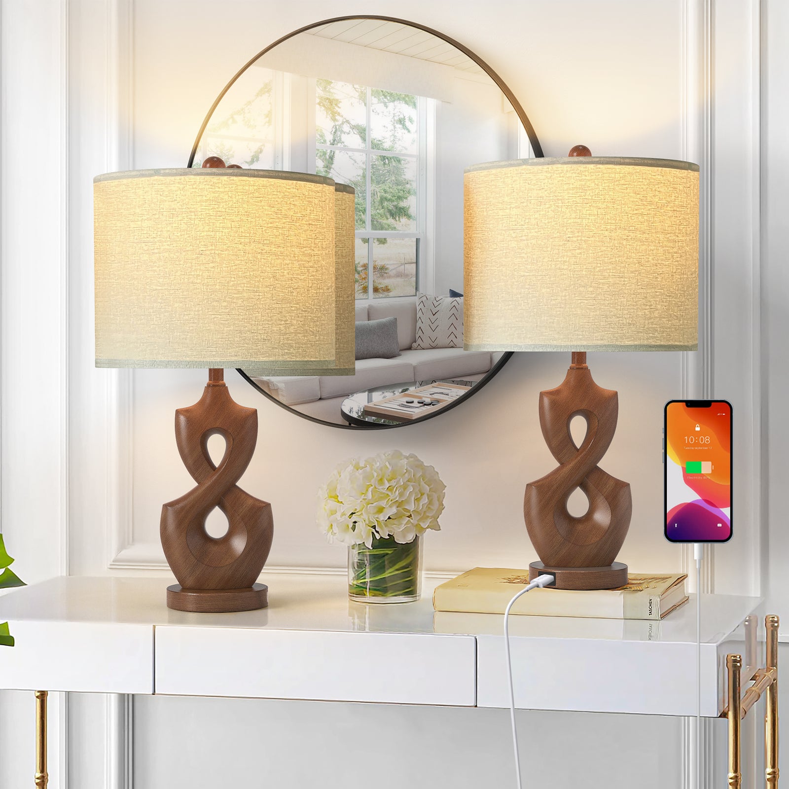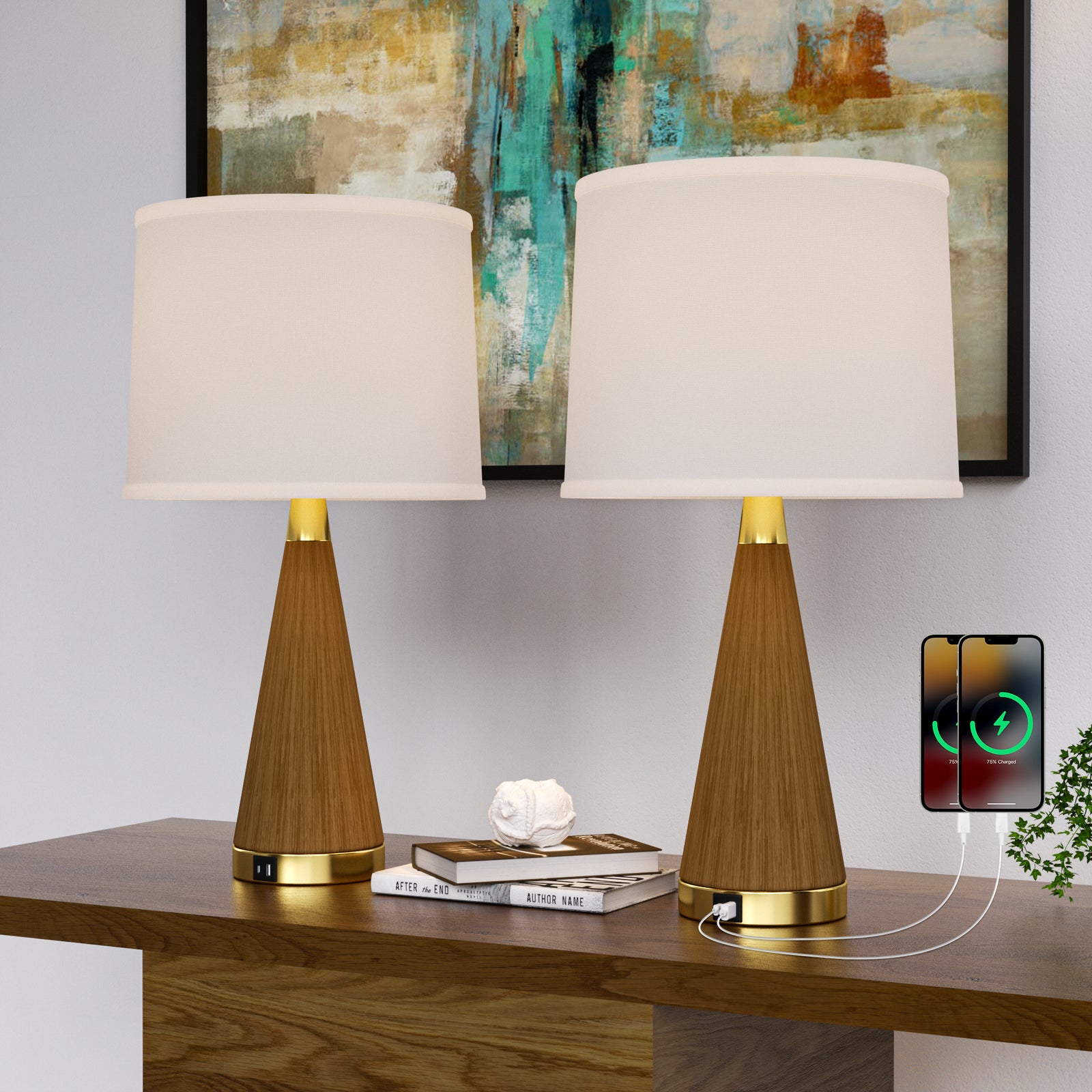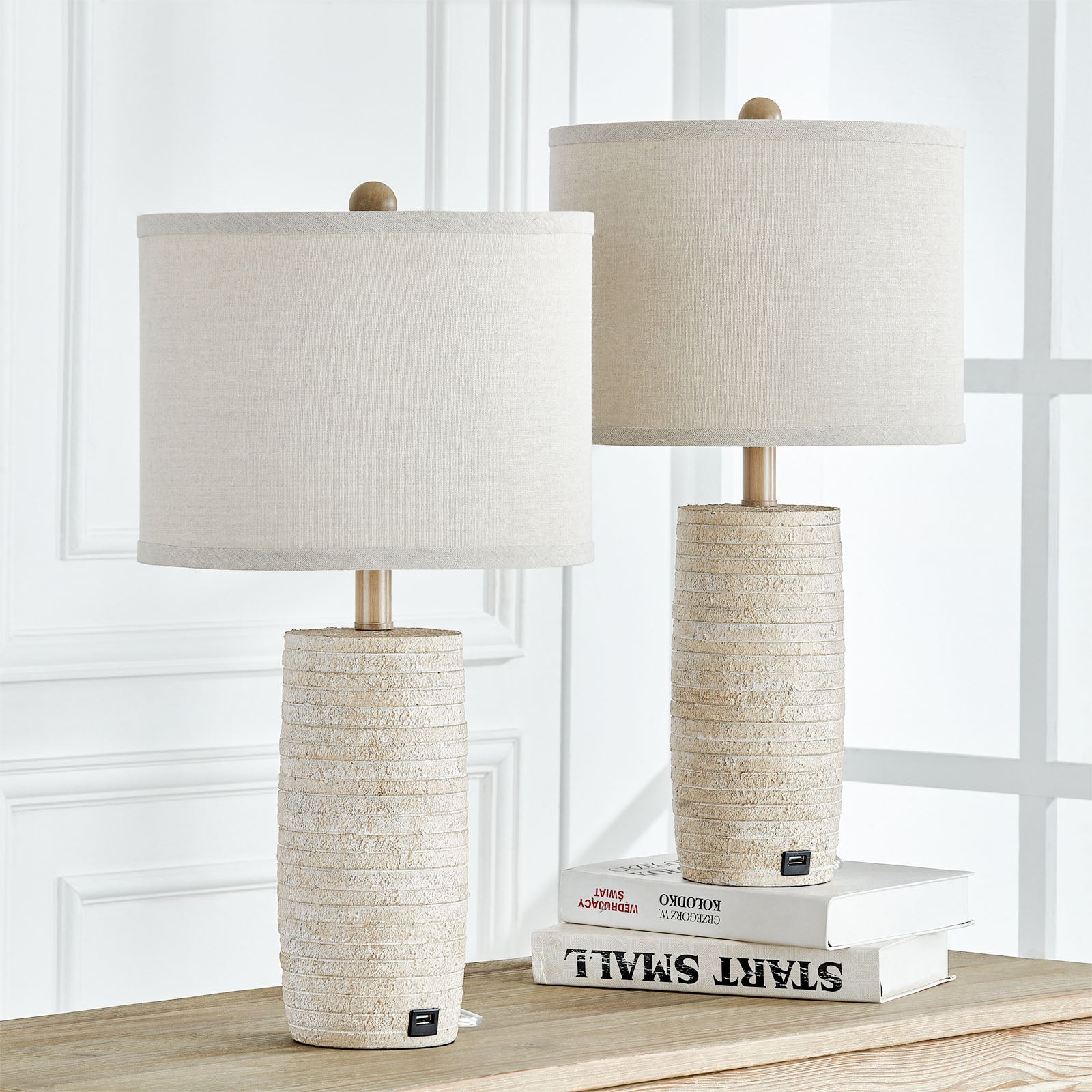 Maxax 23" Farmhouse Table Lamps Set of 2 with USB Ports, 3-Way Dimmable Resin Bedside Lamps for Living Room, Nightstand, Bedroom #T188