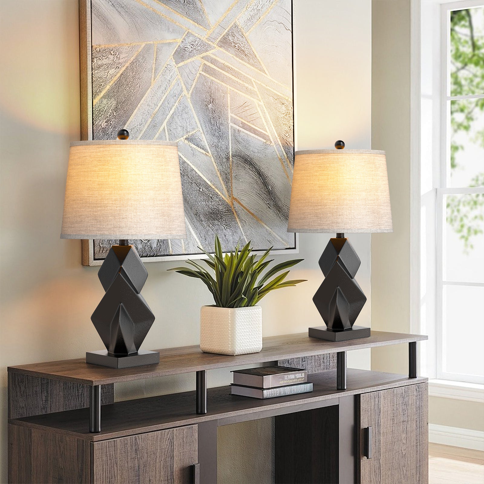 24.5'' Modern Dimmable Resin Table Lamp With USB Port For Living Room/Bedroom #T242