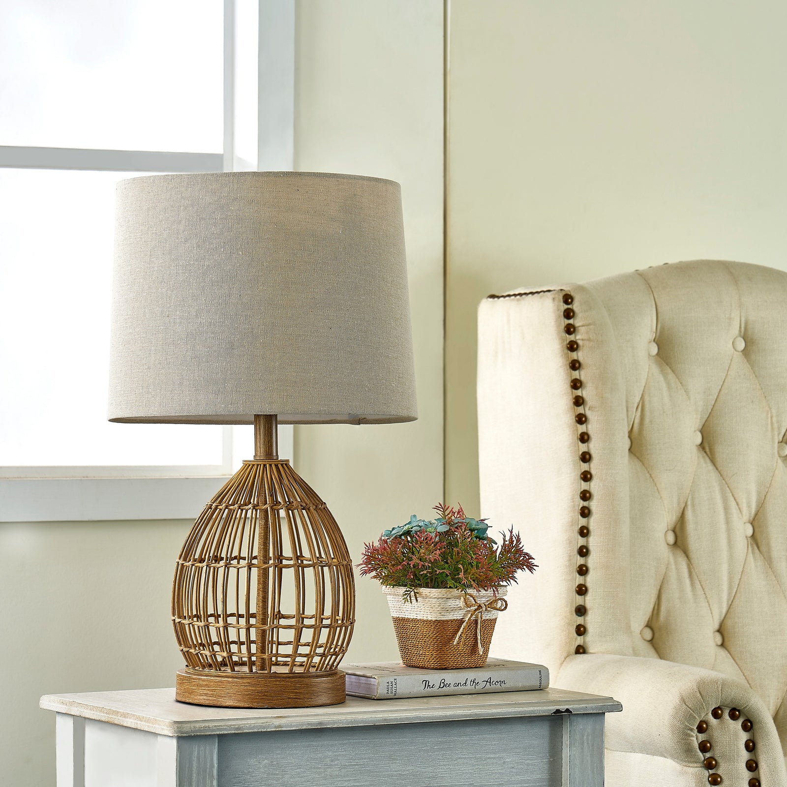22" Traditional Rattan Table Lamp With USB For Living Room/bedroom #T254-WG-S
