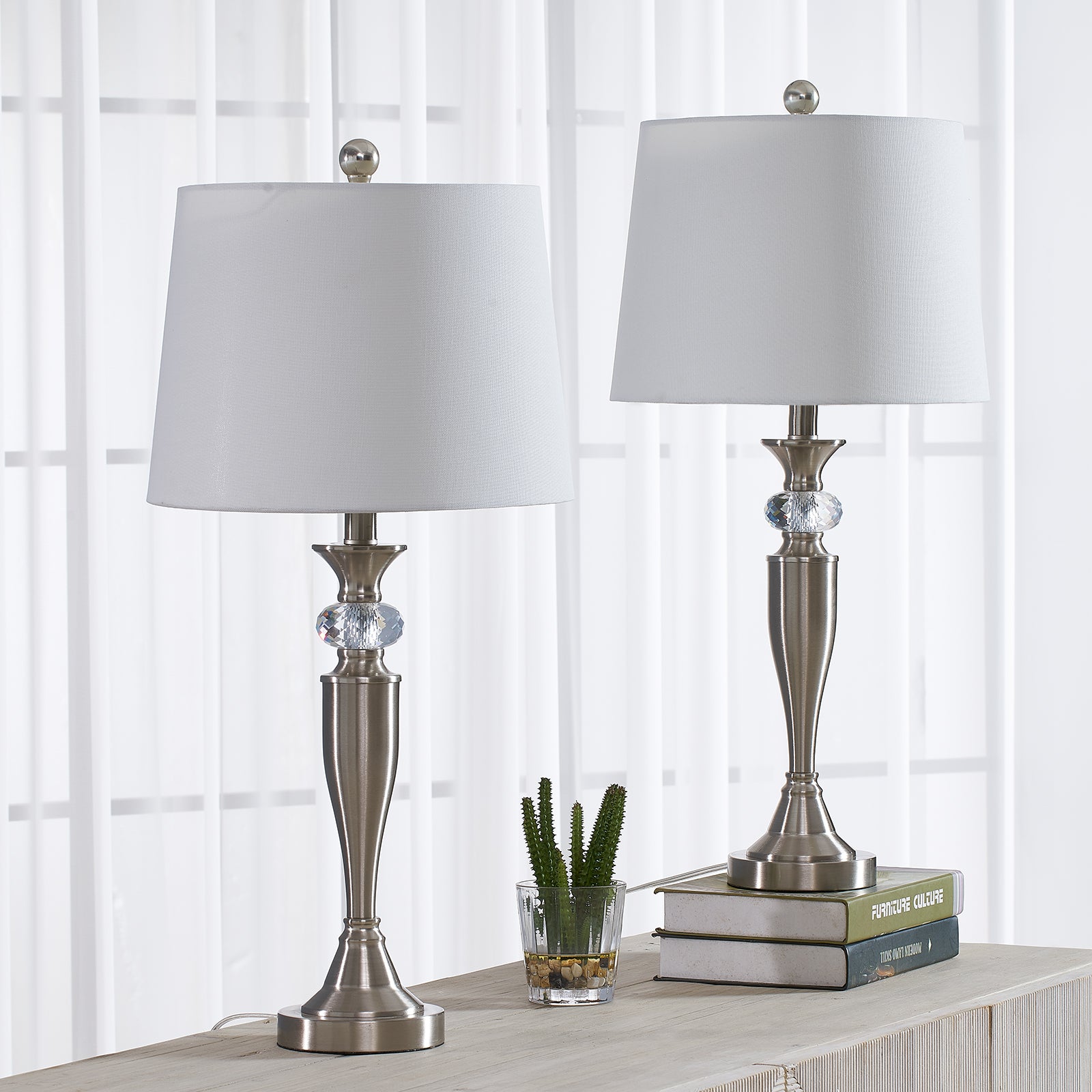 Finesse 27.5'' Crystal/nickel Table Lamp Set #T109