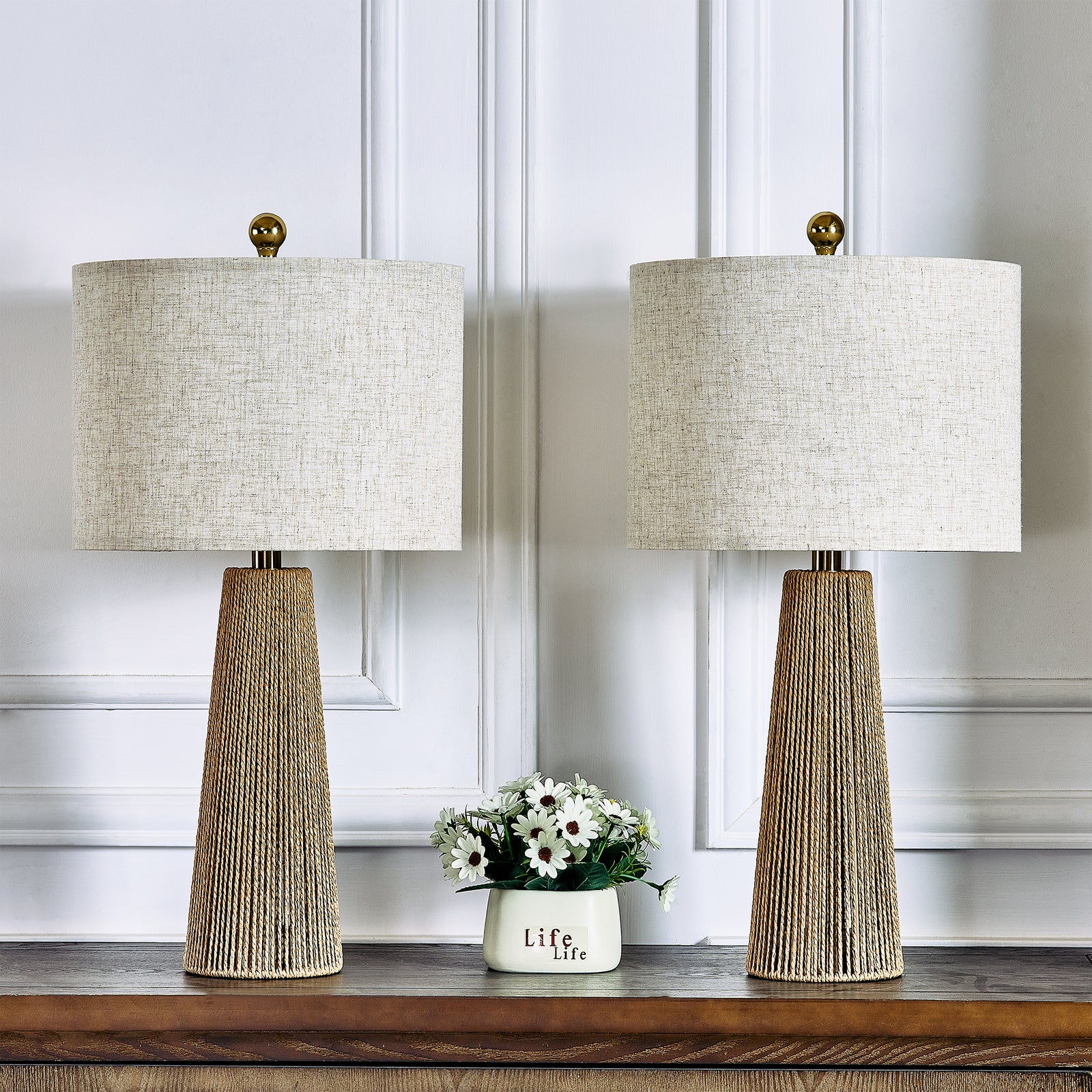 25.8 " Hardware Paper Rope Table Lamp With Wheatish-Colored Lampshade (Set of 2) #T271