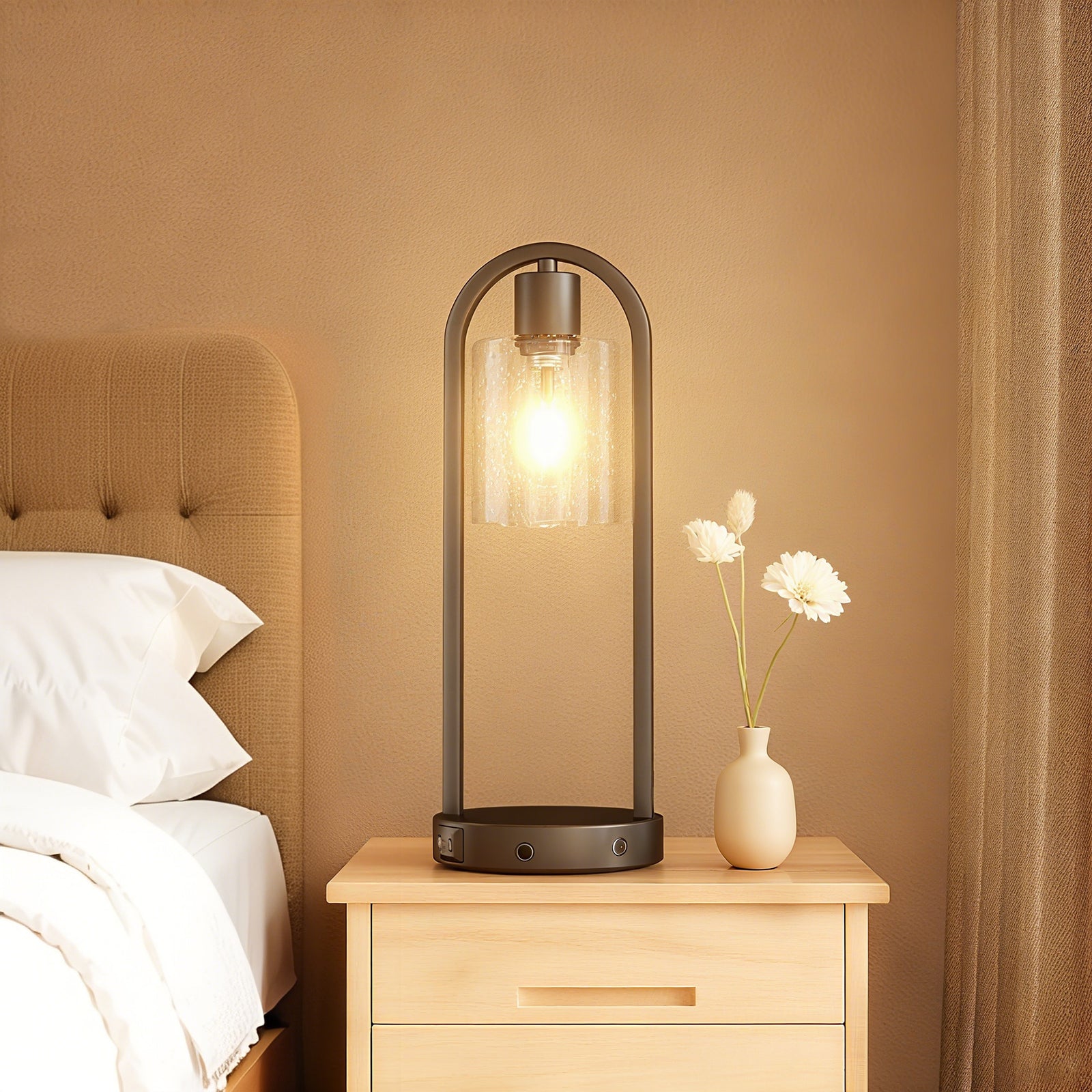 26" Glass And Metal Modern Table Lamp With Usb Ports For Living Room/bedroom #T251