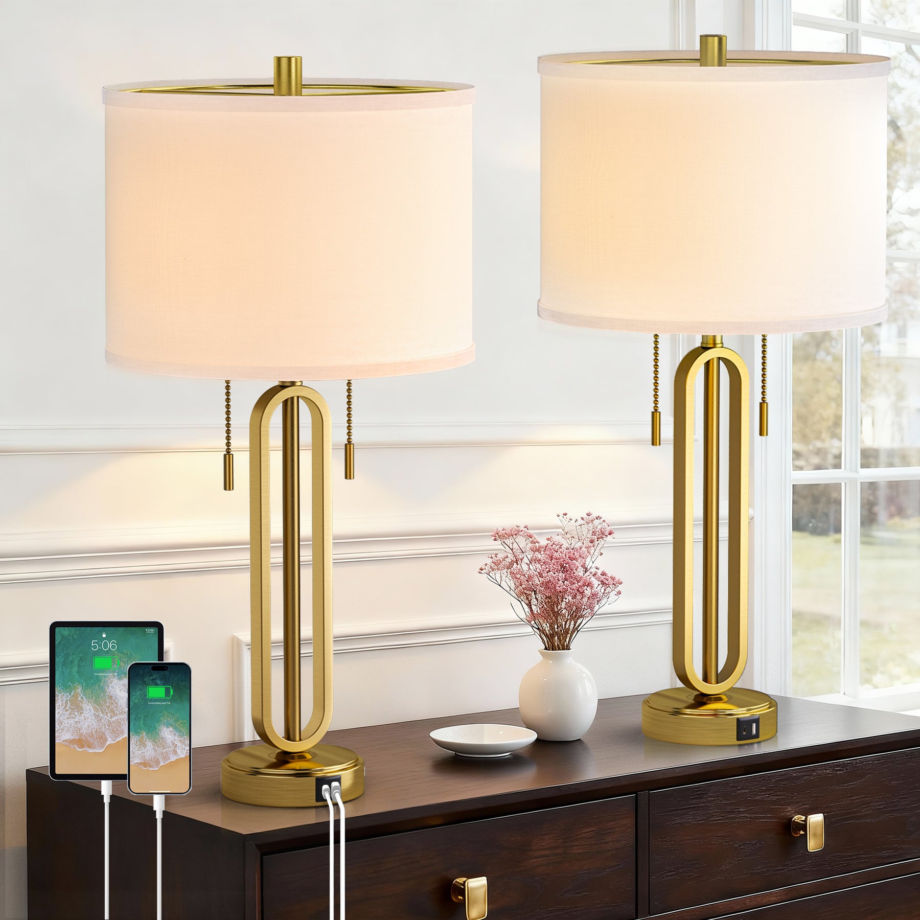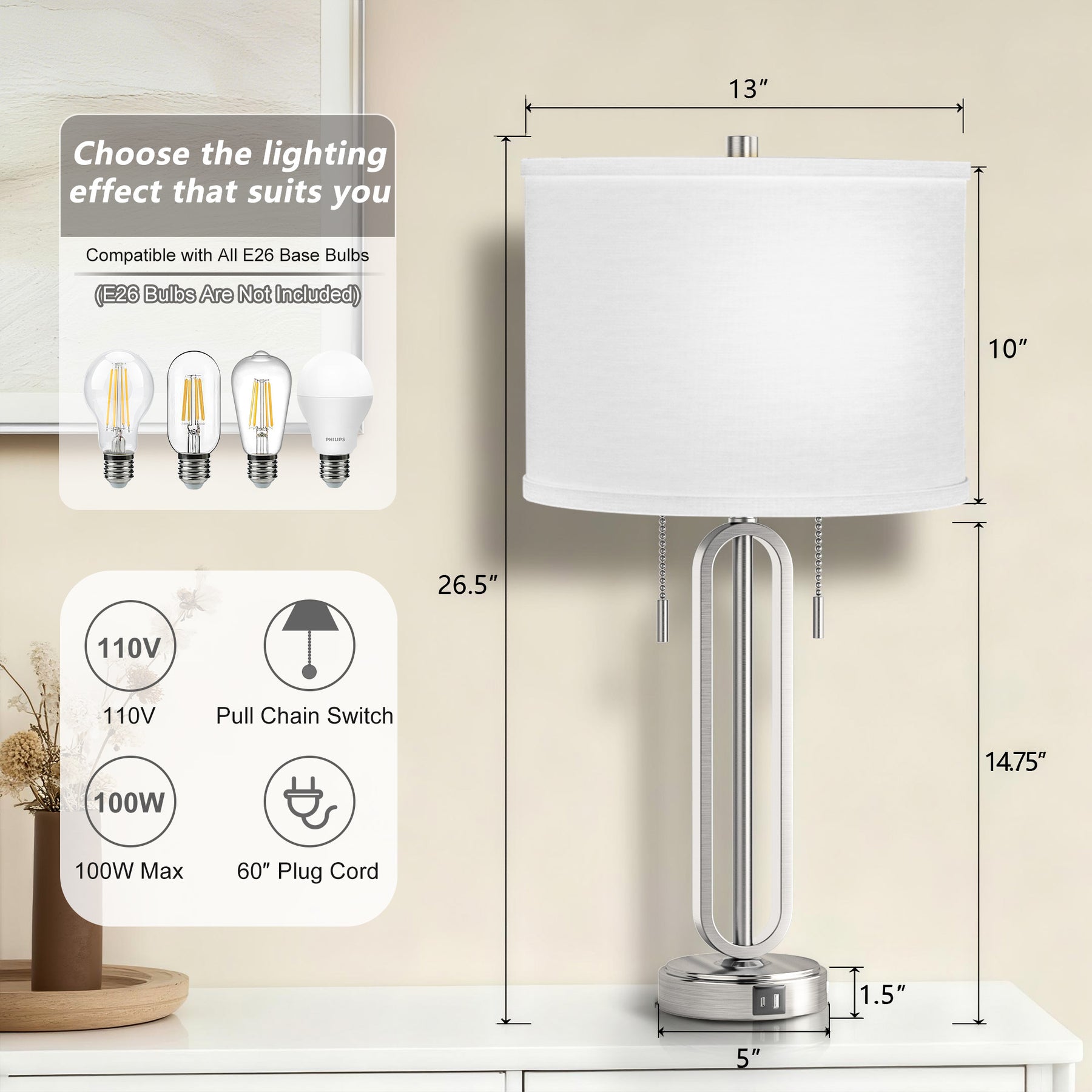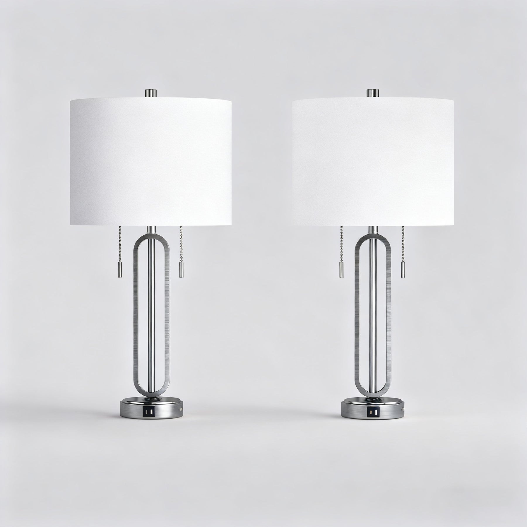 Elevate your space with our modern, sleek, and stylish table lamp. Featuring a striking black metal body and a crisp white linen lampshade, this lamp effortlessly complements any decor. With dual heads and convenient pull-chain switches, it combines functionality with flair. The integrated USB port ensures your devices are always charged, making it ideal for bedrooms, living rooms, or study areas. ETL certified, this lamp is not only a stunning addition to your home but also a safe and reliable choice. Transform any dry space with this versatile and elegant lighting solution.