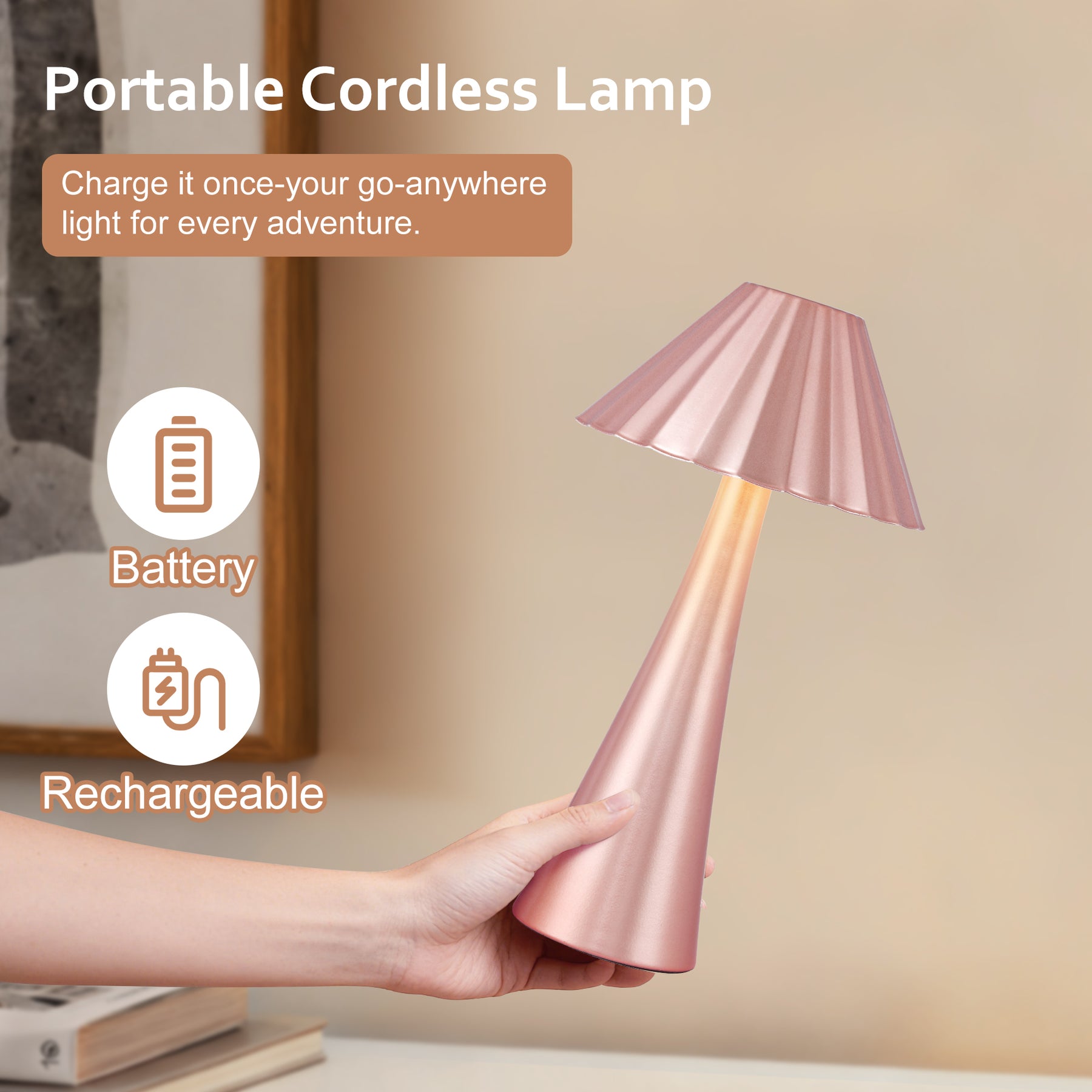 A perfect blend of simplicity and technology, this portable rechargeable table lamp features a minimalist design that adds a modern touch to any space. The tapered body pairs with a frosted lampshade to provide soft and even lighting. With its built-in touch control dimming function, you can easily adjust the brightness to suit different ambiance needs. Completely cordless with a rechargeable battery, it offers ultimate flexibility—place it anywhere, from your bedside and desk to an outdoor patio, and enjoy effortless illumination. This lamp is not only a practical lighting solution but also a stylish decorative piece.