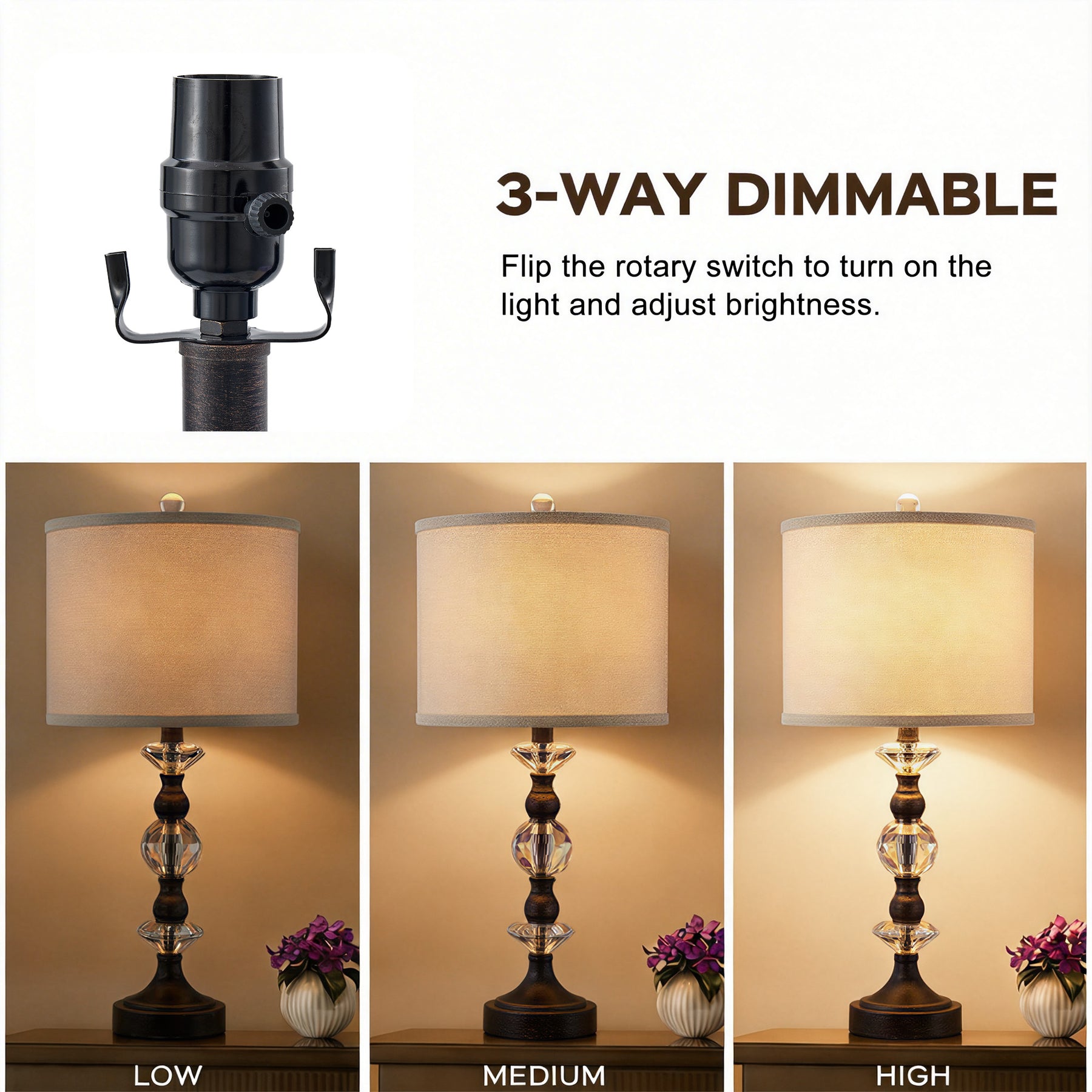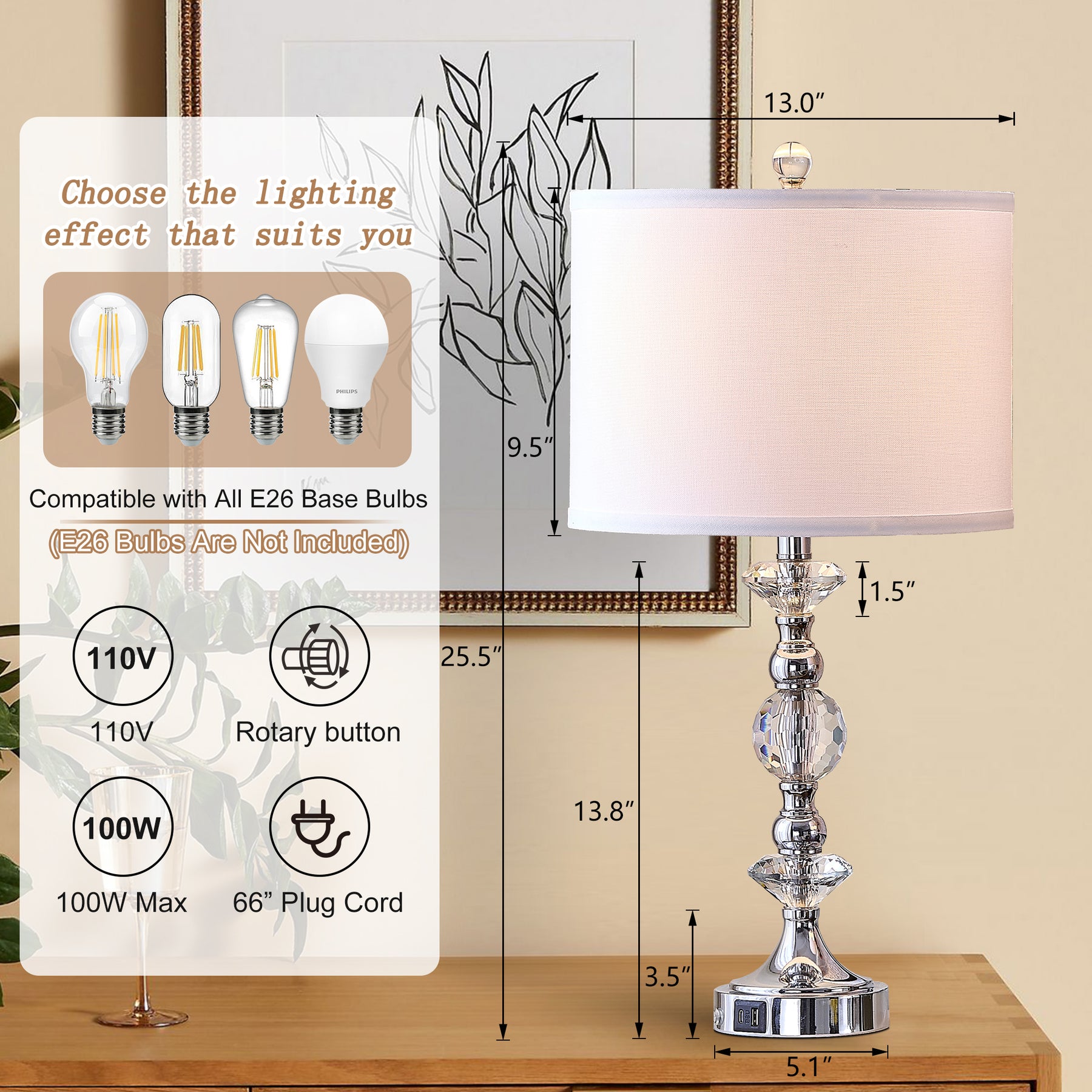 Elevate your home decor with this crystal glass table lamp set (2 pieces), a perfect blend of modern and classic styles. The transparent crystal column base pairs beautifully with the chrome-plated metal base, while the soft white fabric lampshades add a warm lighting effect to your living room, bedroom, or study. The minimalist design complements a variety of interior styles, making it an elegant focal point whether placed on a nightstand or side table.