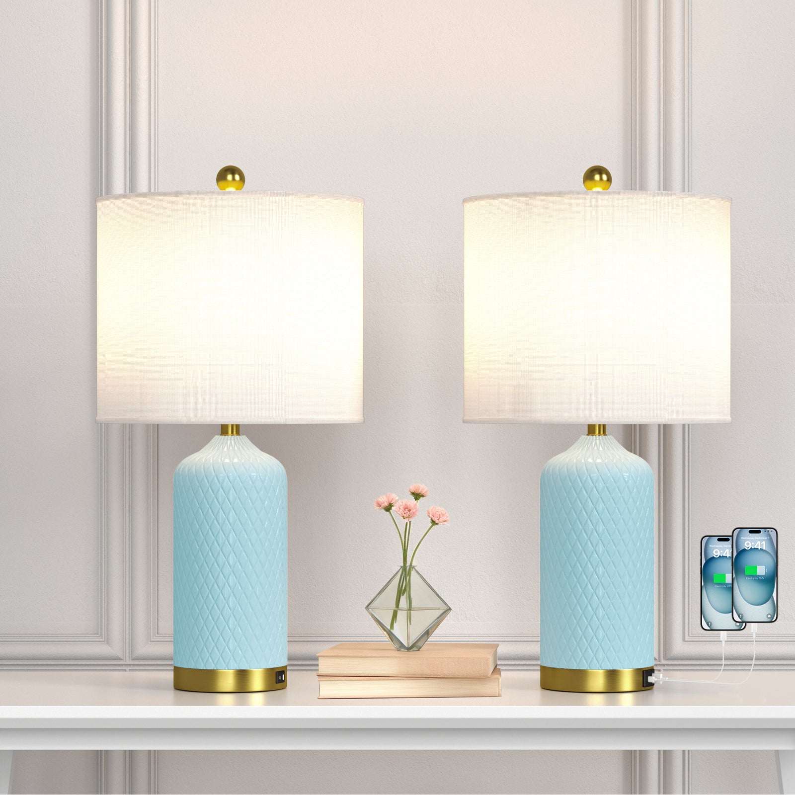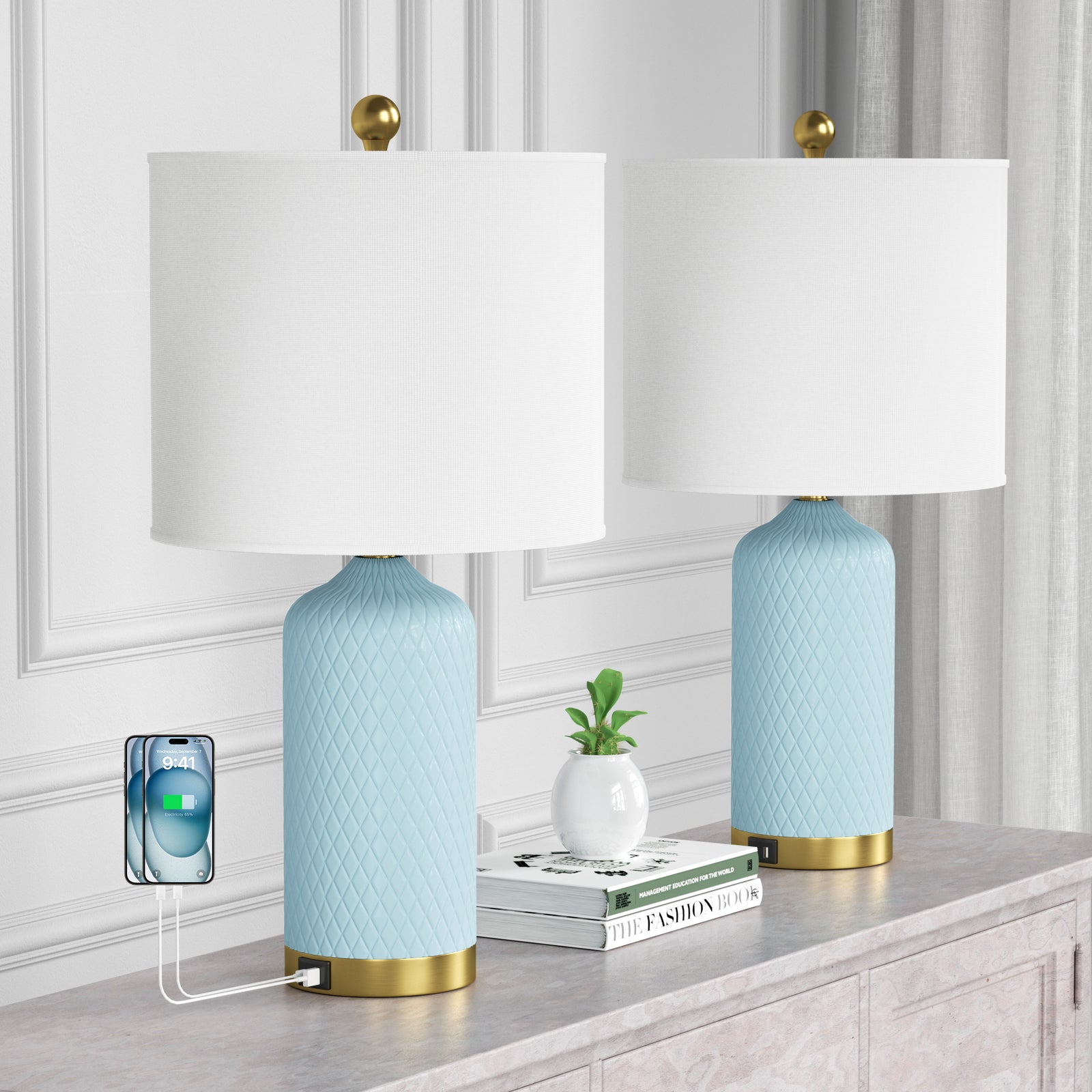 Aura 23.5'' Modern Blue Ceramic Table Lamp With USB Ports For Living Room/Bedroom #T252