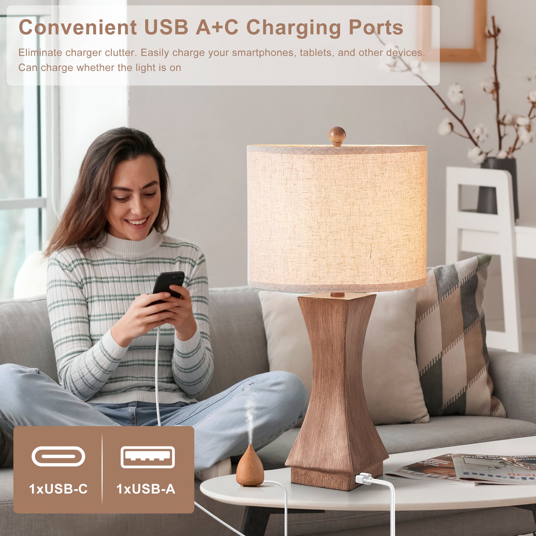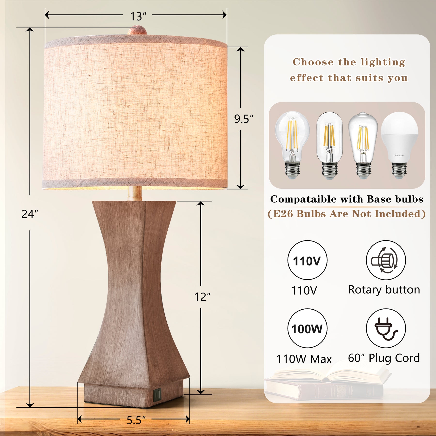24.5'' Modern Dimmable Resin Table Lamp With USB Port For Living Room/Bedroom #T242