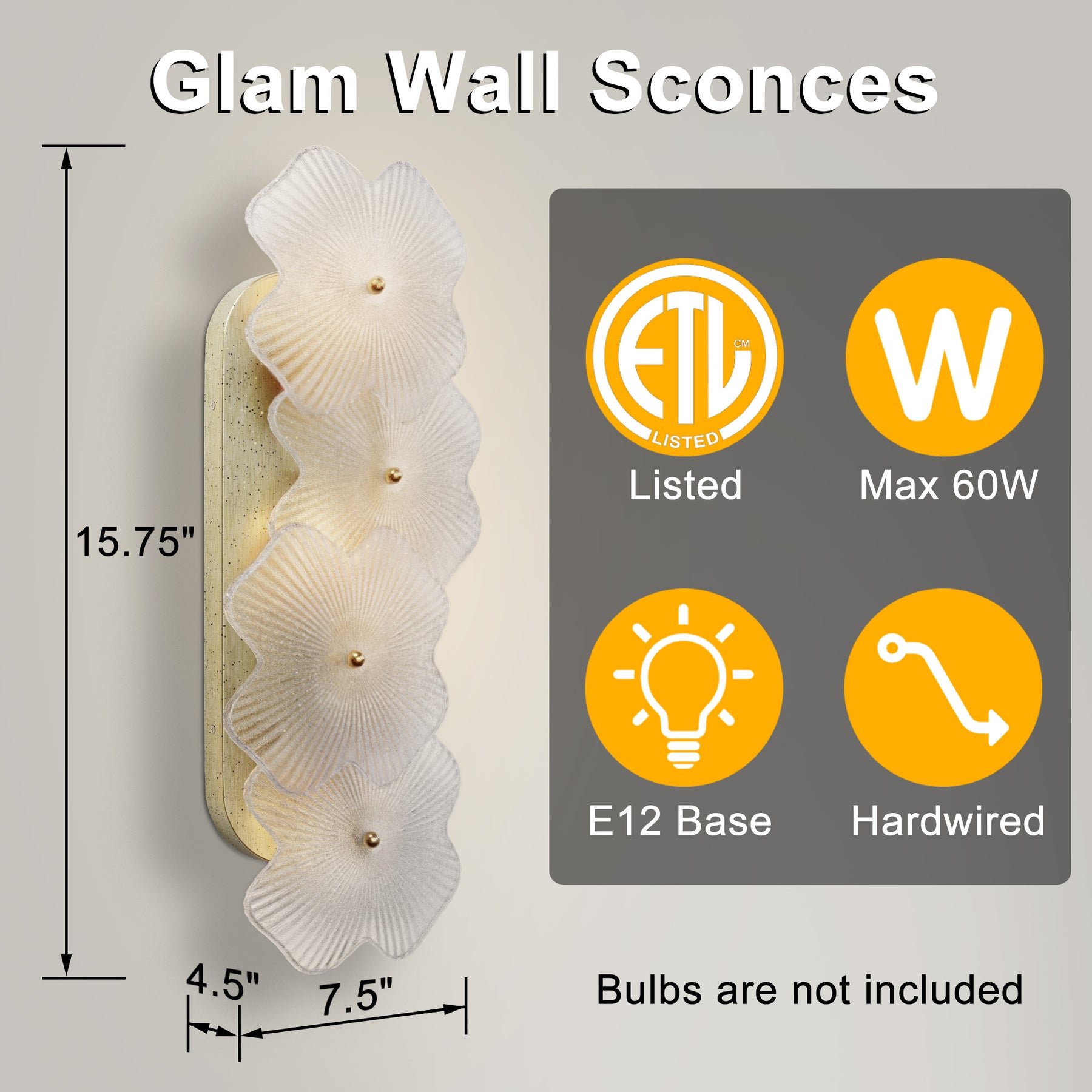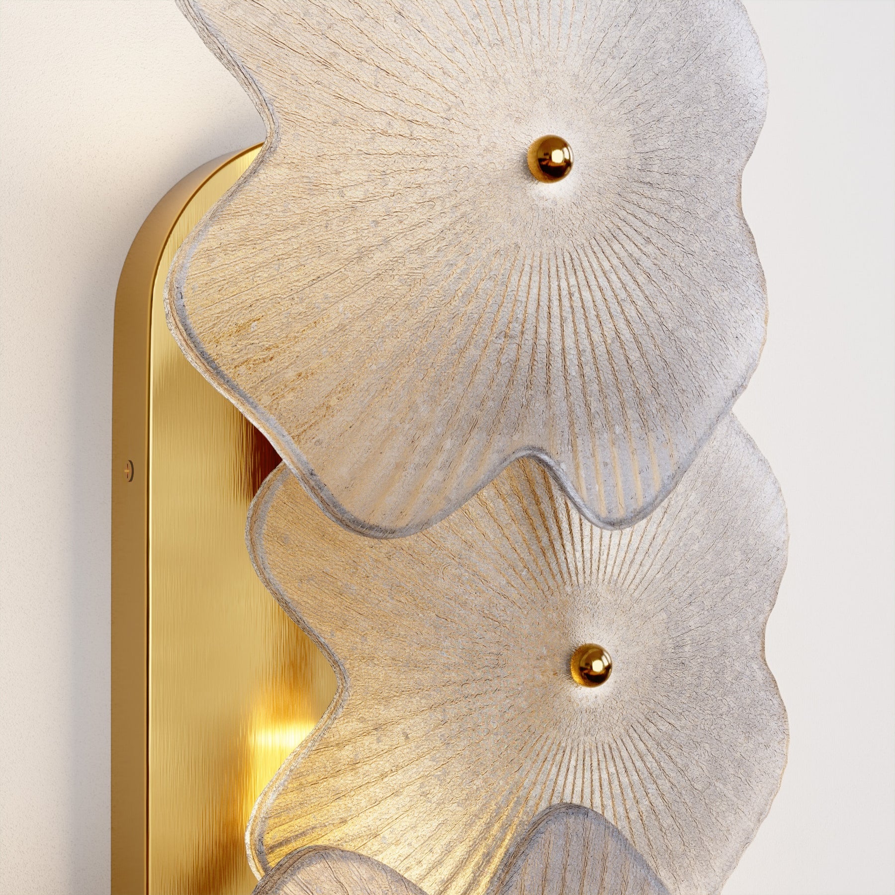 Lumin 3 - Light 𝟭𝟵.𝟱-𝗜𝗡𝗖𝗛 𝗪 Dimmable Metal Brass Etl Wall Sconces With Petal-shaped Glass #48003